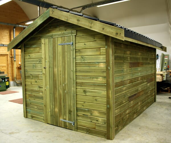 Bod/uthus leveres i seksjoner (4 vegger, gulv og tak i 2 deler)
