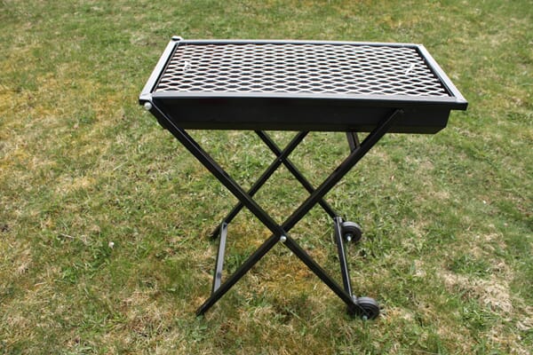 Grillristen er av strekkmetal, hvilket sikrer lang holdbarhet og lett rengjøring med stålbørste.