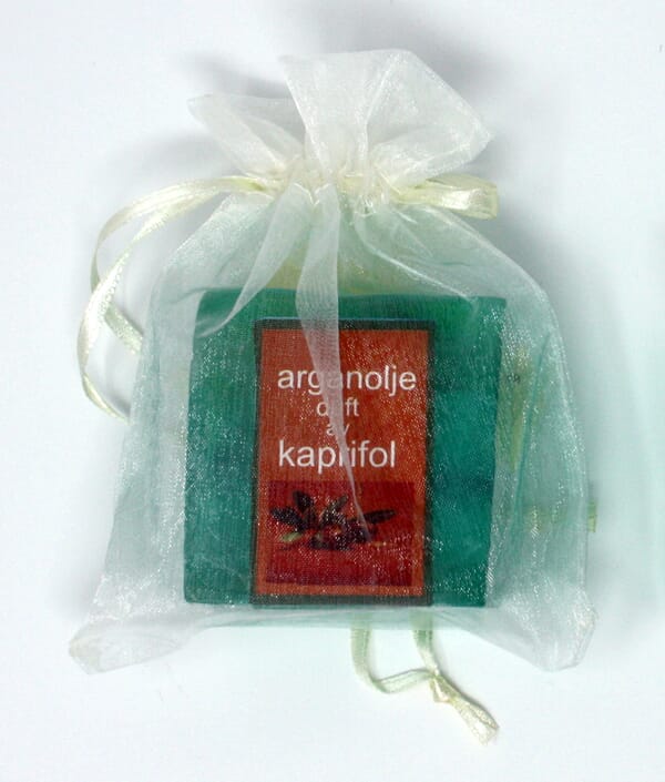 Såpen inneholder økologisk kaldpresset olje fra argantreet. Oljen kommer fra kjernen i frukten og er rik på fuktighet. Egner seg til pleie av hud, hår og negler. Bidrar til å redusere rynker. Virker mykgjørende på huden og forbedrer elastisiteten. Gjør godt for tørre albuer og tørre legger.
