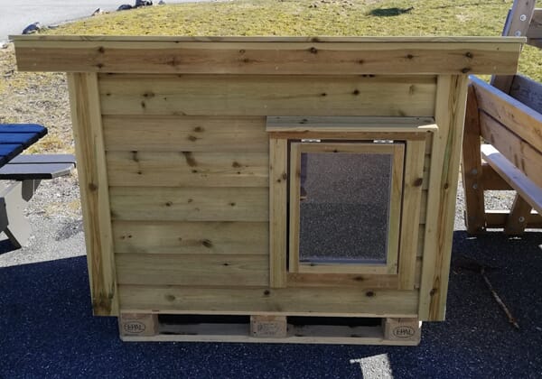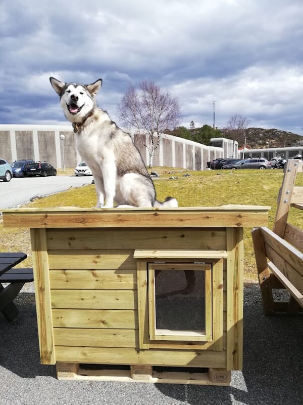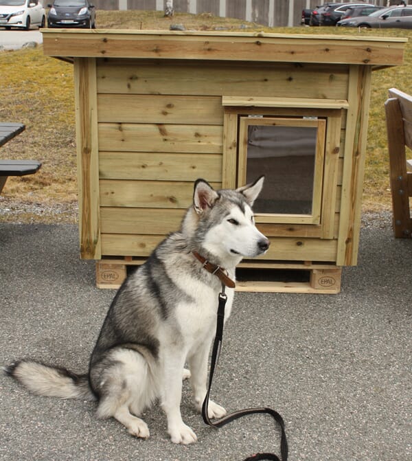 Gulvet i hundehuset er bekledt med vannfast kryssfiner.