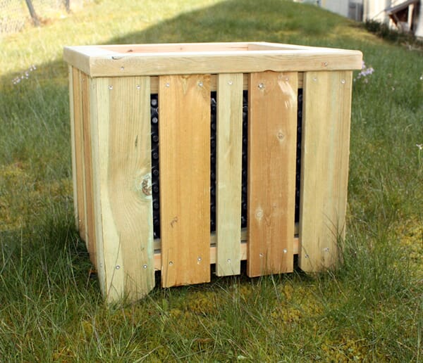 Blomsterkasse laget i trykkimprenert materiale.