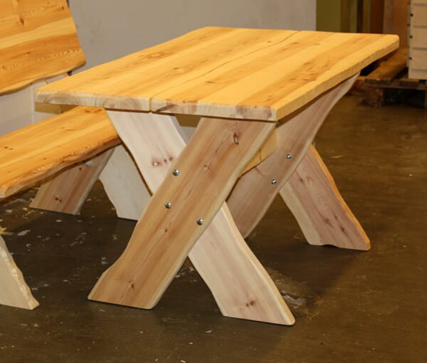 Vi har et bord på lager det er behandlet med Oliebeis/lasyr, Farge: Teak.